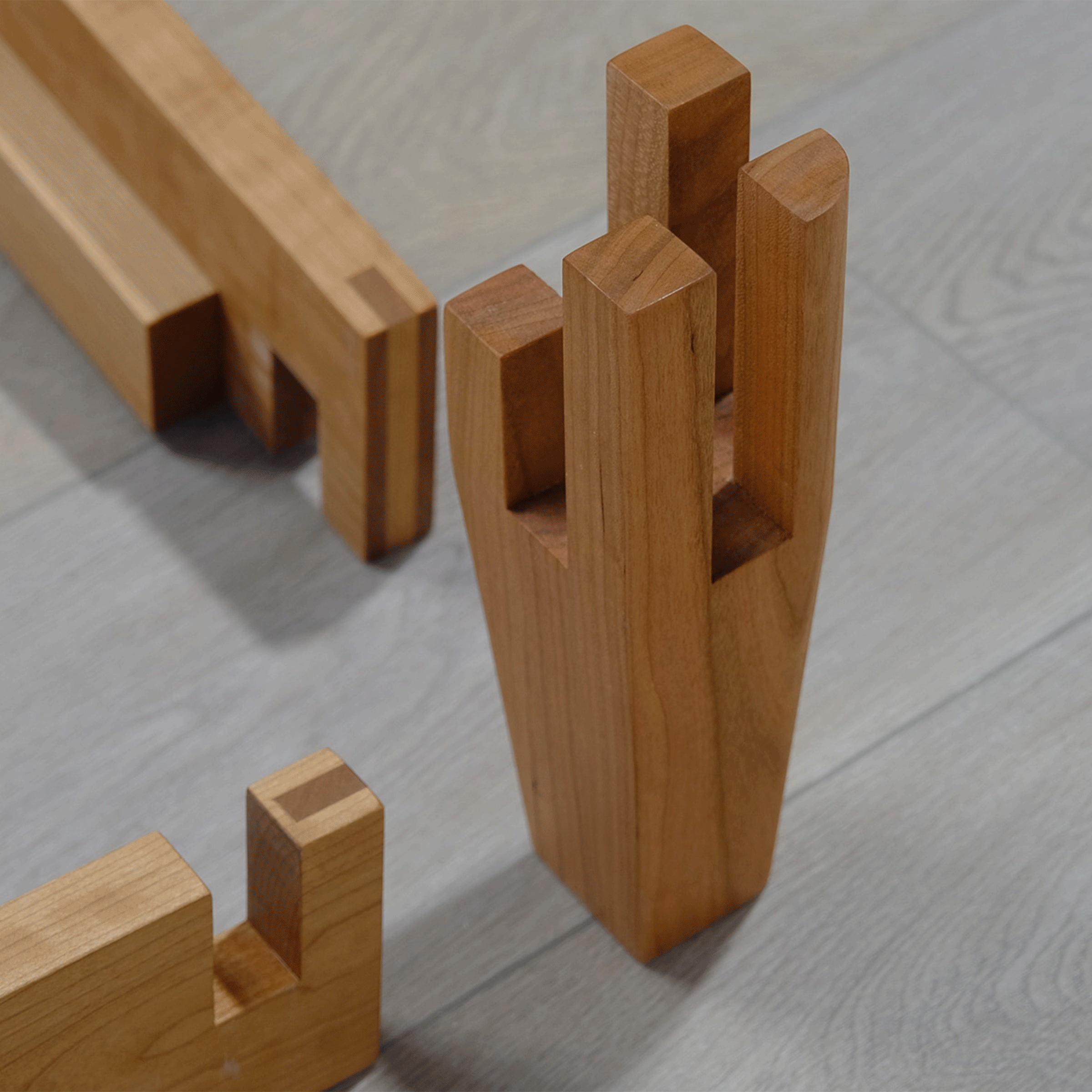 The castle joint is a staple of Japanese woodworking. Featuring three interlocking pieces for strength and beauty, traditional construction is time- and labor-intensive. CNC manufacturing streamlines the process, making the final product cheaper without sacrificing quality.